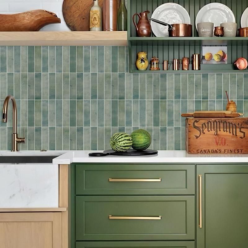 【2900円お得 20枚セット】ボーダー タイルシール BDM-04 ストーングリーン 耐水 耐熱 キッチン 洗面所 トイレの模様替え 壁紙デコ 29cm×22.9cm