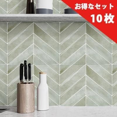 【1100円お得 10枚セット】ヘリンボーン タイルシール HRB-02 ペールグリーン 耐水 耐熱 キッチン 洗面所 トイレの模様替え 壁紙デコ 22.9cm×29cm