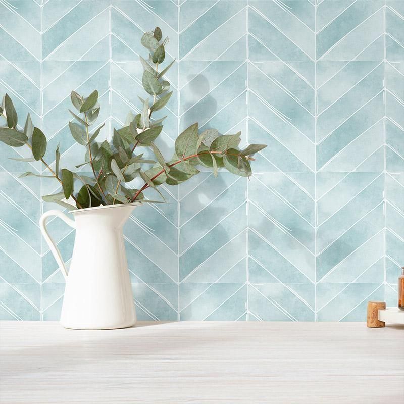 【7700円お得 40枚セット】ヘリンボーン タイルシール HRB-03 ペールブルー 耐水 耐熱 キッチン 洗面所 トイレの模様替え 壁紙デコ 22.9cm×29cm